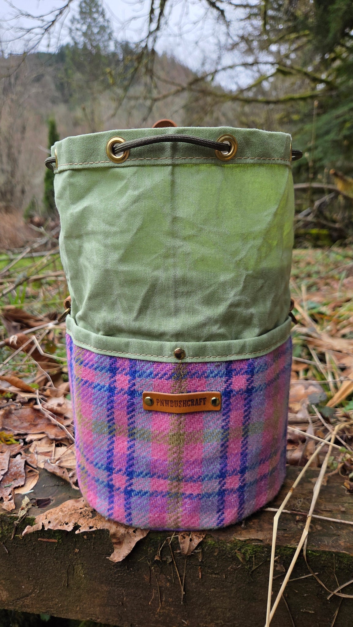 So we paired it with a beautiful green waxed canvas we had been saving for the right project. The colors matched so perfectly that we couldn’t resist turning it into one of our Deluxe Cedar Bucket Bags.