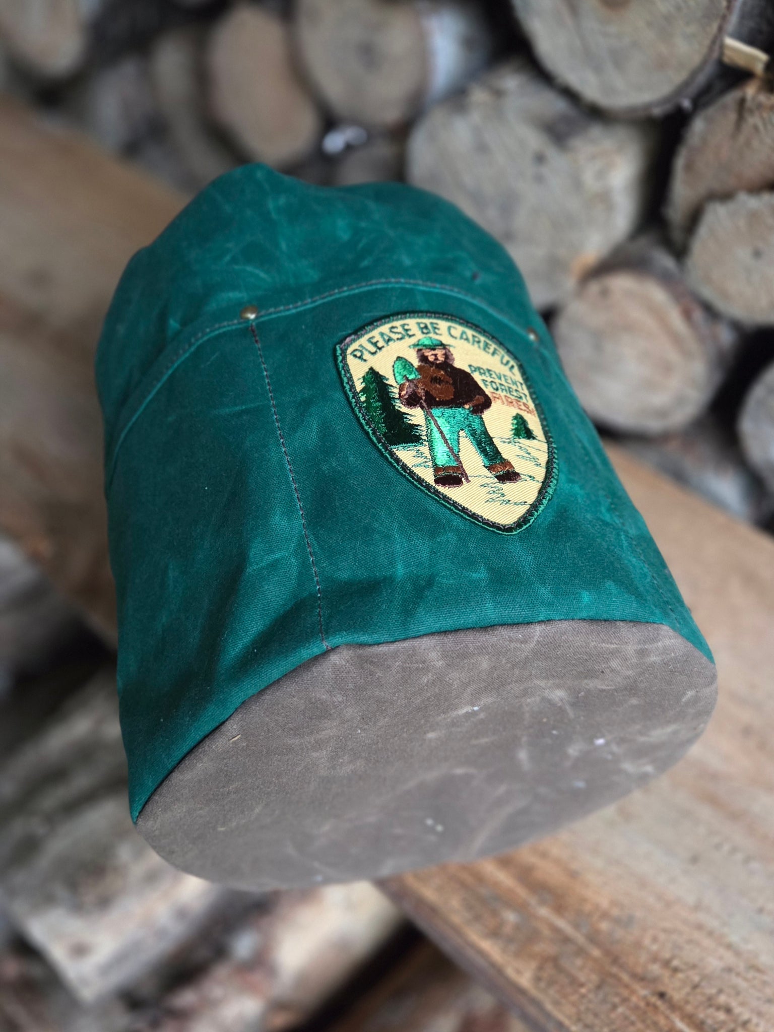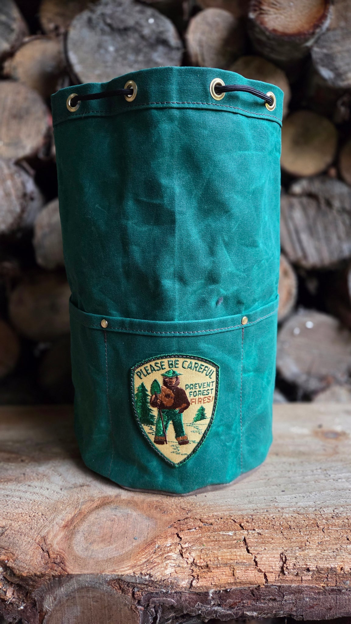 XL Cedar Bucket Bag – Green Waxed Canvas with vintage Patch