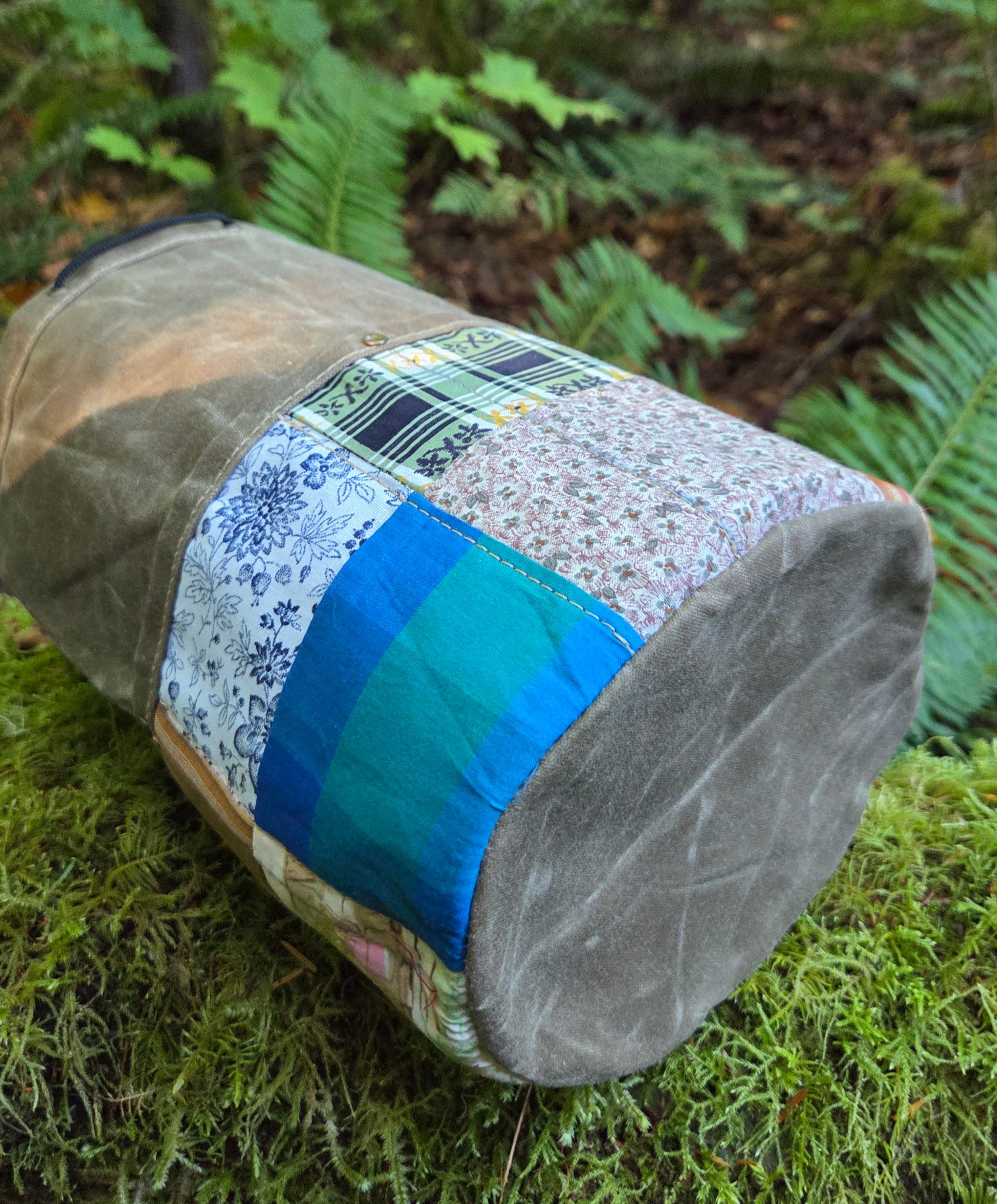 This versatile bucket bag combines the rugged durability of waxed canvas with the distinctive charm of handcrafted vintage patchwork. Featuring tan canvas and four unique pattern pockets, this bag is both a functional tool for outdoor adventures and a statement piece that celebrates traditional craftsmanship.