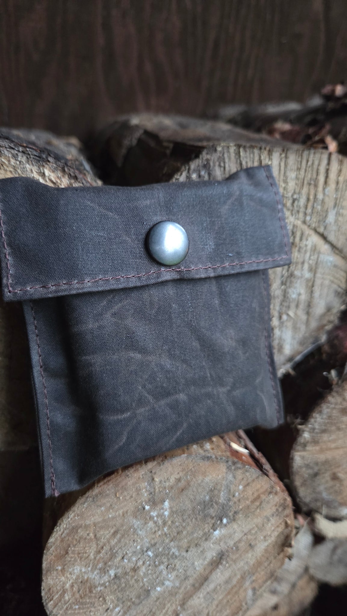 The tiny bag itself measures 3.5" wide by 4.25" with a flap. And of course, we made it out of our favorite waxed canvas with durable outdoor thread and a quality snap.