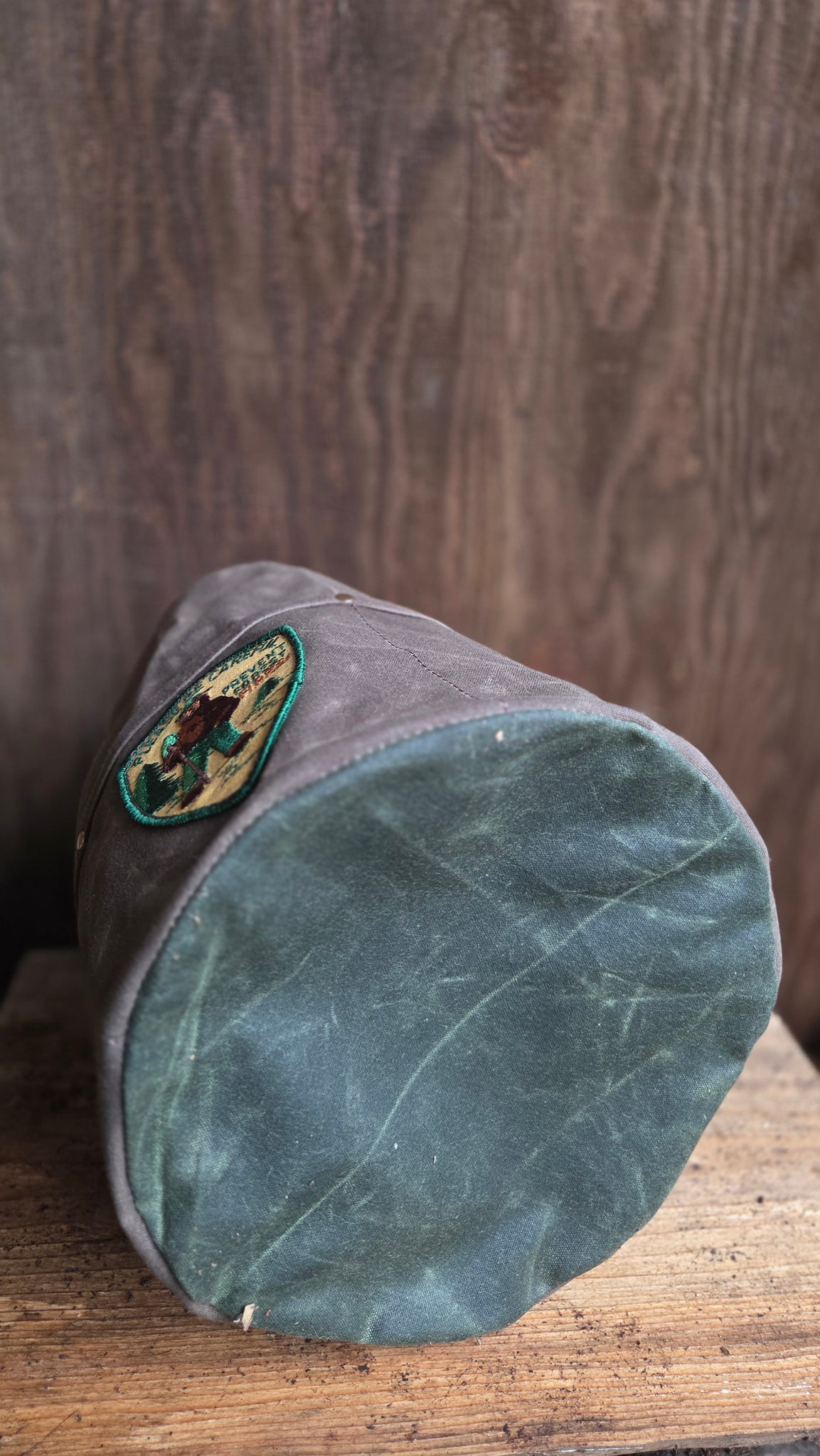 XL Cedar Bucket Bag – Green Waxed Canvas with vintage Patch