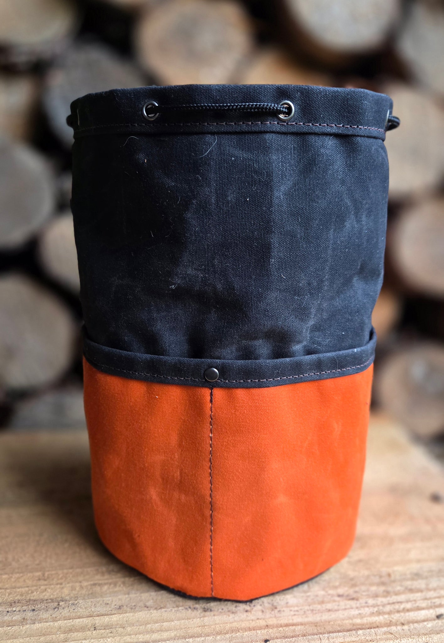 PNWBUSHCRAFT Waxed Canvas Cedar Bucket Bag with Orange Pockets - Medium