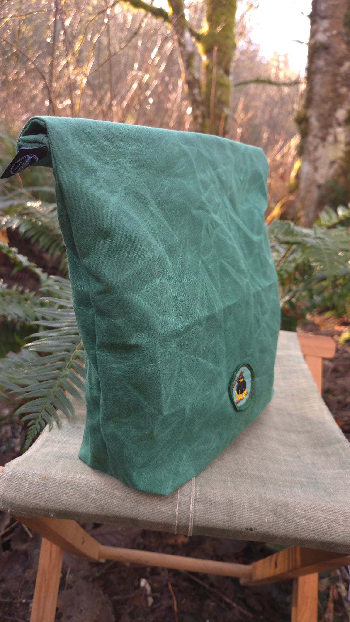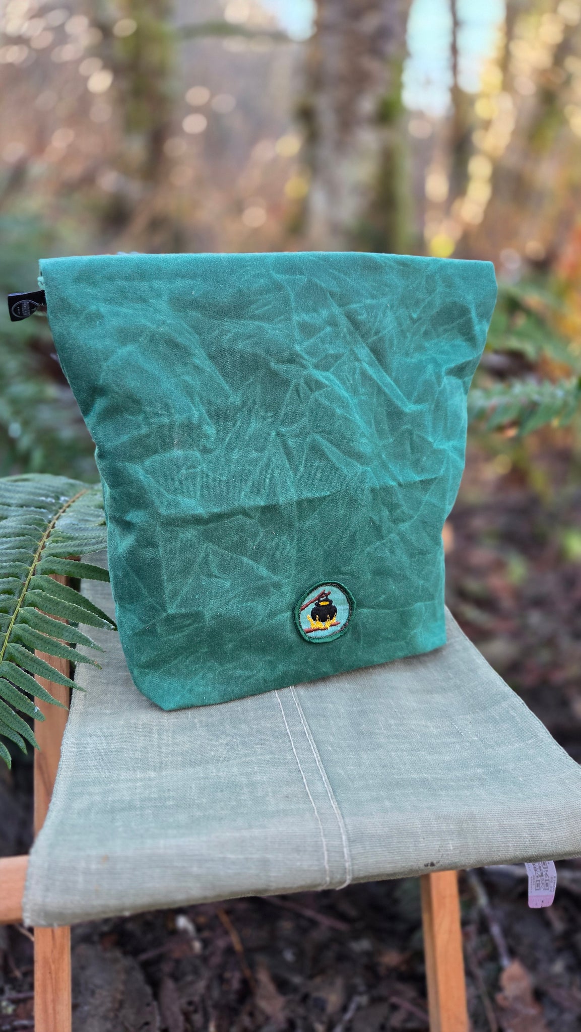 Crafted from our 8.25 oz waxed canvas, this bag is soft, sturdy, and ready for everyday use. There's no hardware, no fuss—just toss in your lunch, roll the top, and go. Whether you're headed to the job site, the riverbank, or your favorite trail, this sack has that old-school vibe with modern durability.